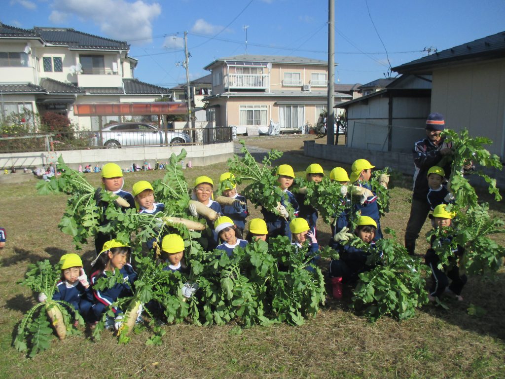 2025年12月2日 / 最終更新日 : 2025年12月2日 nakayoshikodomoen お知らせ 11月14日大根掘りに行ってきました🌟(4・5歳児) 11月14日、4歳児・5歳児さんが園の畑へ大根掘りに行ってきました🌟とっても大きな大根が掘れて、にっこにこの子どもたち☺お家で美味しくいただいてくださいね♪