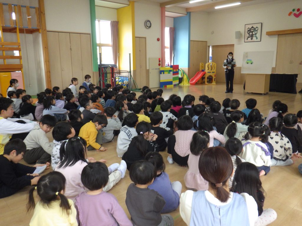 2月5日、交通安全教室が開催されました🚙加美町危機管理室の方が来てくださり、紙芝居で分かりやすく道路上の危険を説明してくださいました。引き続き、交通ルールを守ることの大切さを伝えていきたいと思います。