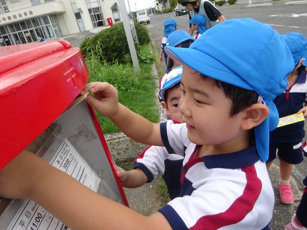 9月15日は敬老の日ということで、いつもお世話になっているおじいちゃんおばあちゃんへの日頃の感謝の気持ちを手紙に込めました✨そして、近くのポストまで、自分の手で投函してきました🌟「喜んでくれるかな♪」と笑顔いっぱいの子どもたちでした♪